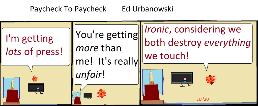 Between rallies October 27, 2020 ~ ed1212 Share this: Click to share on X (Opens in new window) X Click to share on Facebook (Opens in new window) Facebook Like Loading... Related Published by ed1212 Self-published author, poet, cartoonist and dog lover. I respect and encourage differing opinions, so long as they're well-informed and based in fact. View all posts by ed1212