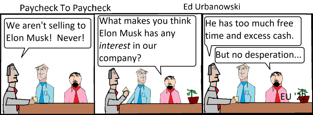 Meeting with the CEO May 4, 2022 ~ ed1212 Share this: Click to share on X (Opens in new window) X Click to share on Facebook (Opens in new window) Facebook Like Loading... Related Published by ed1212 Self-published author, poet, cartoonist and dog lover. I respect and encourage differing opinions, so long as they're well-informed and based in fact. View all posts by ed1212